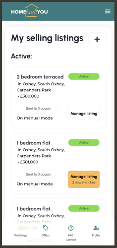 Once you’ve entered the details of your property for sale into the app, you’ll immediately see if there are any potential buyers for a similar property in the HomeFindsYou database. By further entering and activating your listing, you will receive all the potential buyers matching your offer in real time. You will receive a running notification of each new interested party via the app if you have selected a paid package. Otherwise you need to log in yourself from time to time to see if there are new buyers that match.